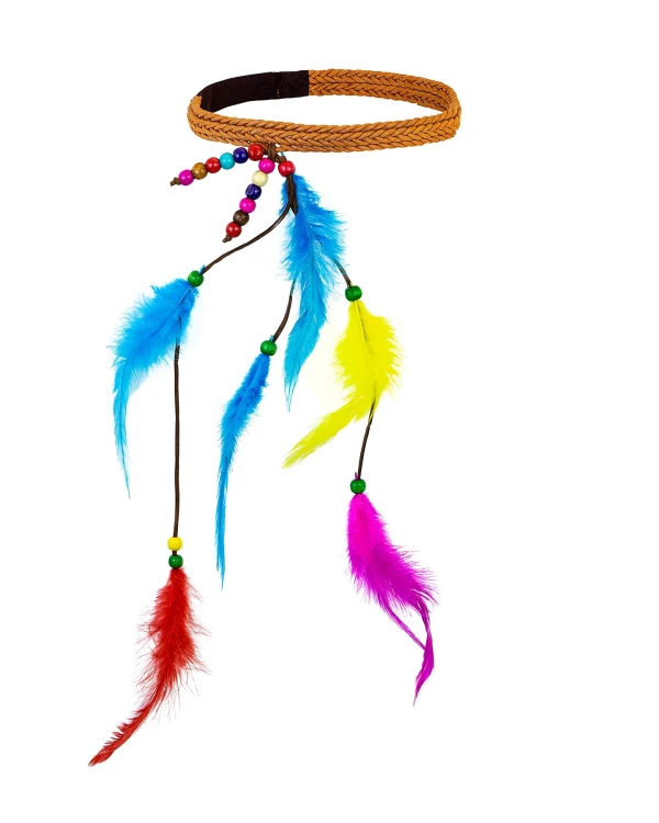 BANDEAU HIPPIE MULTICOLOR AVEC PERLES ET PLUMES