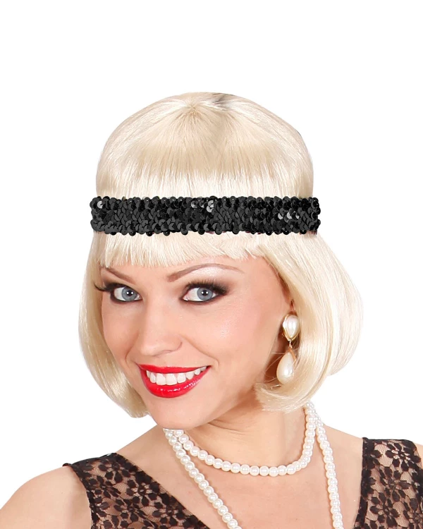 BANDEAU NOIR A PAILLETTES AVEC 2 PLUMES & PIERRE