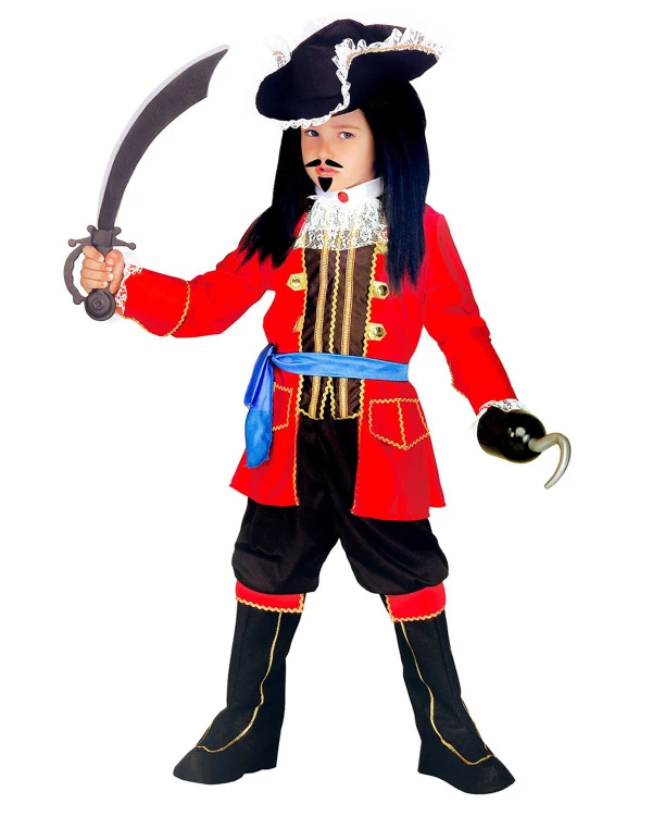 CAPITAINE DES PIRATES casaque avec jabots, pantalon avec surbottes, ceinture, chapeau 116cm