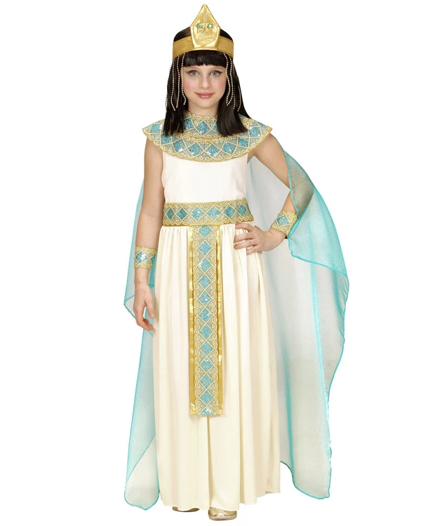 CLEOPATRE robe avec ceinture, collier, manchettes, coiffe, cape 128cm