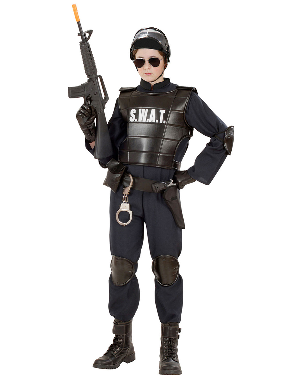 AGENT S.W.A.T. combinaison, gilet pare-balles, ceinture avec holster et bourse, protège-genoux et coudes, masque 140cm