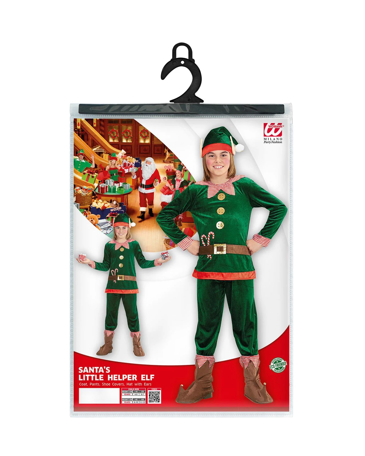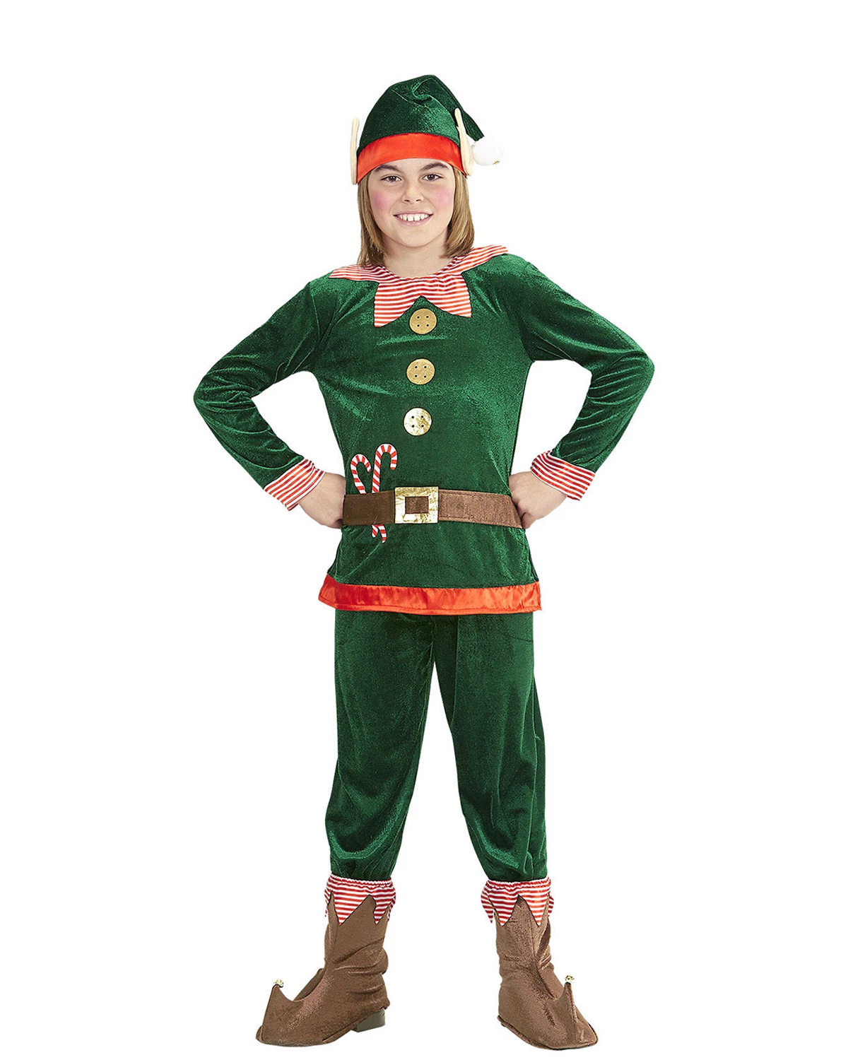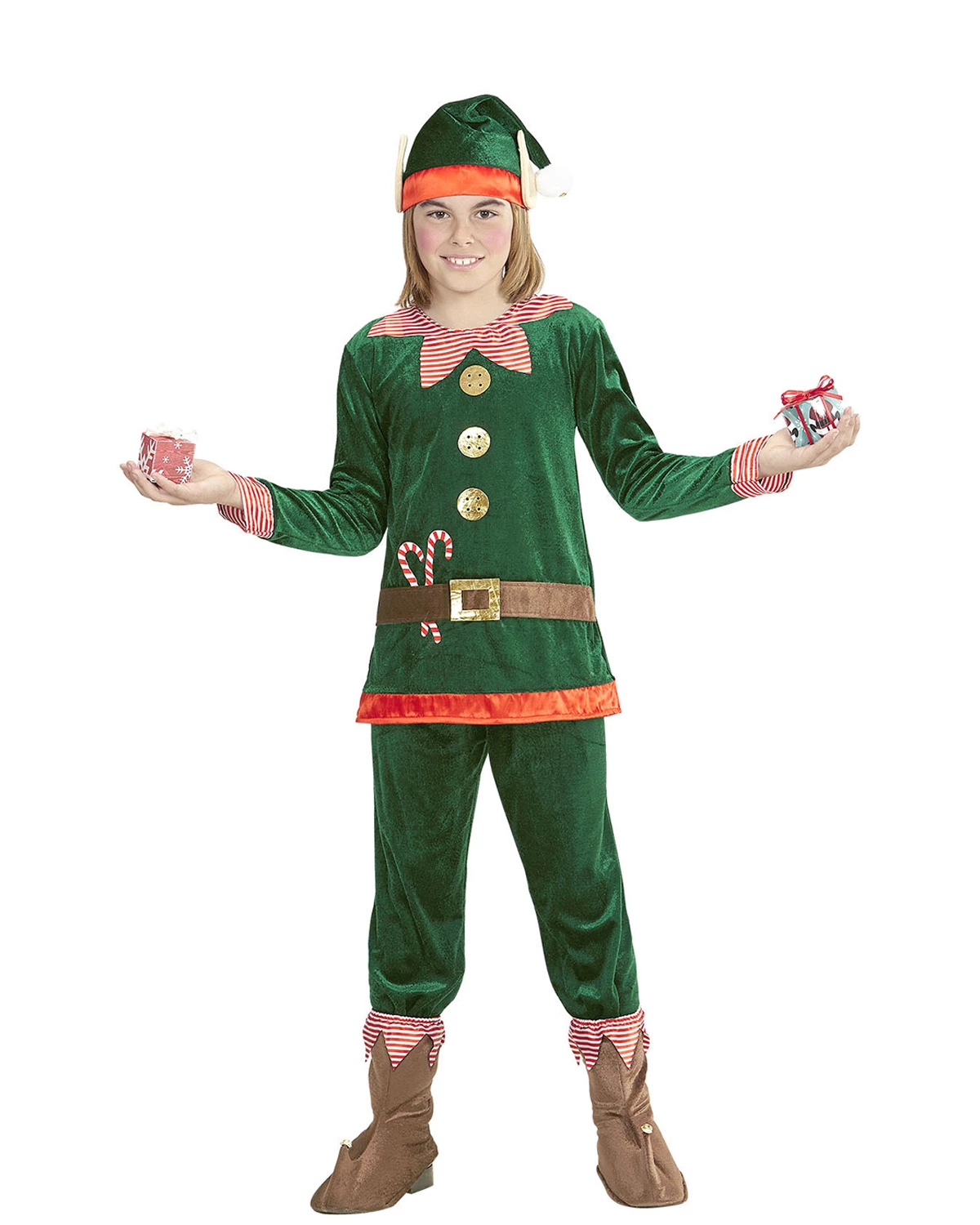 ASSISTANT DU PÈRE NOEL veste, pantalon, sur-chaussures, bonnet avec oreilles 140cm