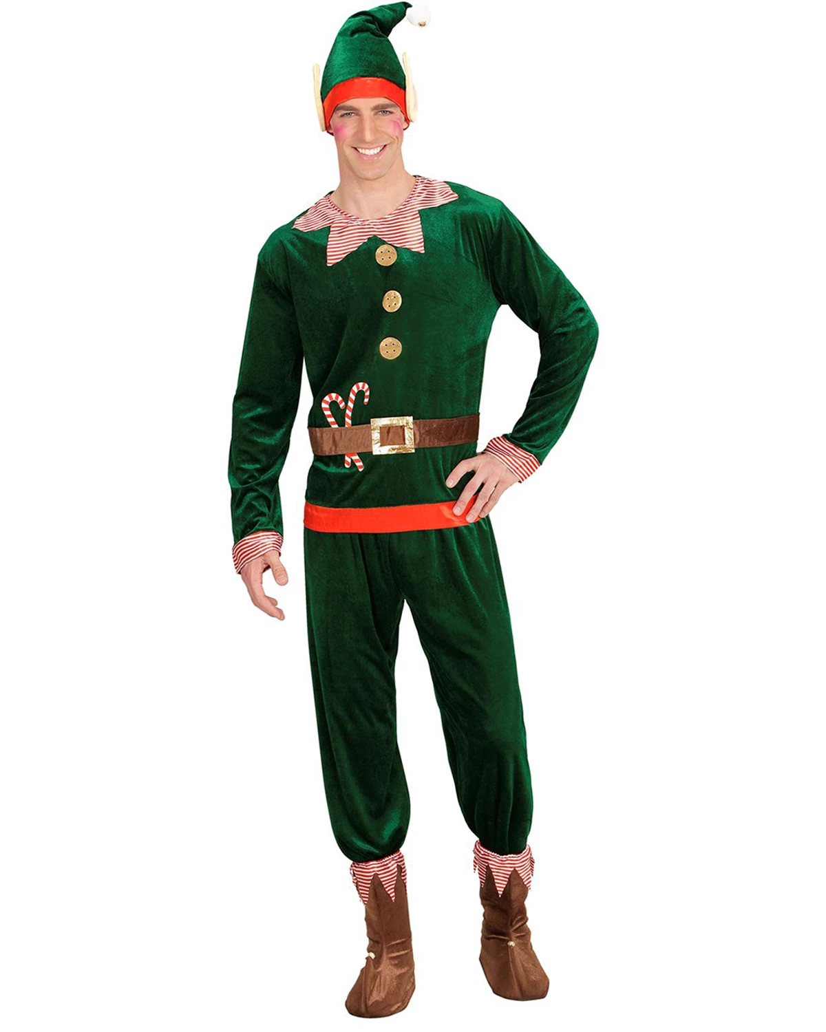 ASSISTANT DU PÈRE NOEL veste, pantalon, sur-chaussures, bonnet avec oreilles S