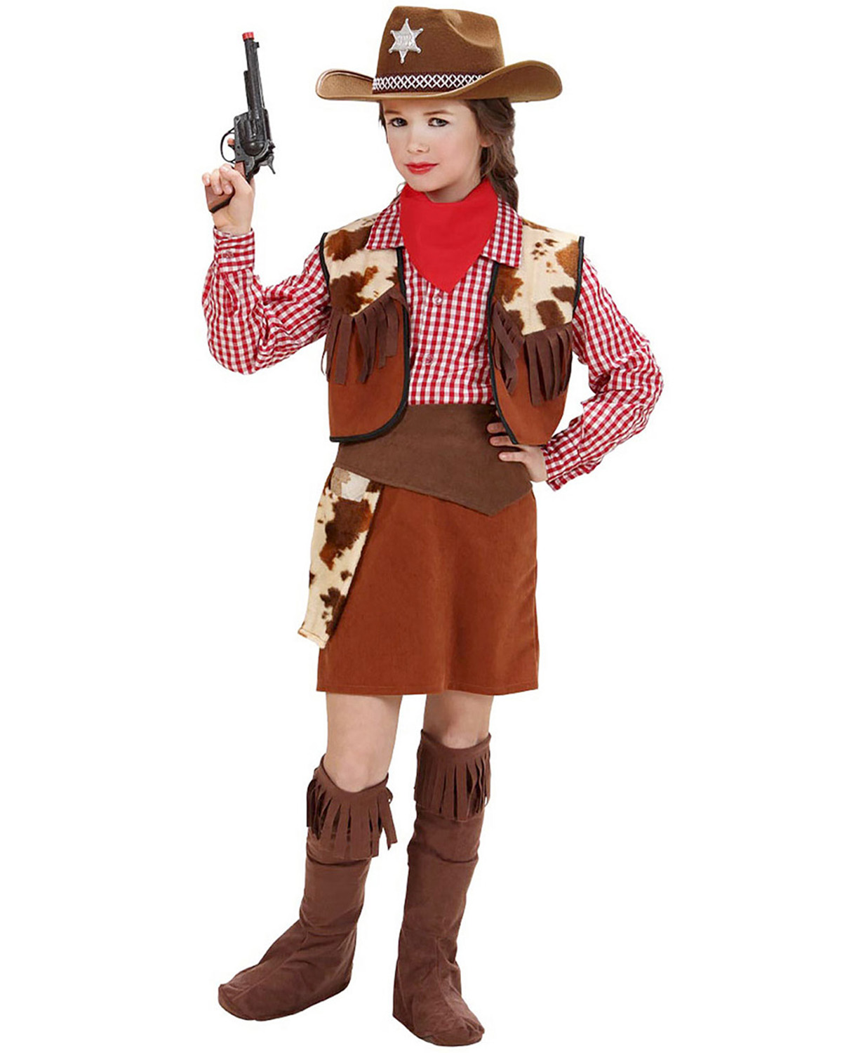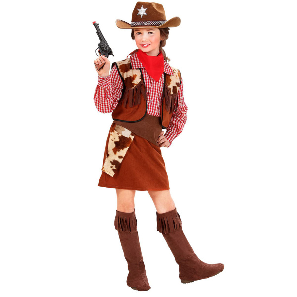 COWGIRL chemise, veste, jupe, ceinture avec étui, surbottes, bandana 158cm