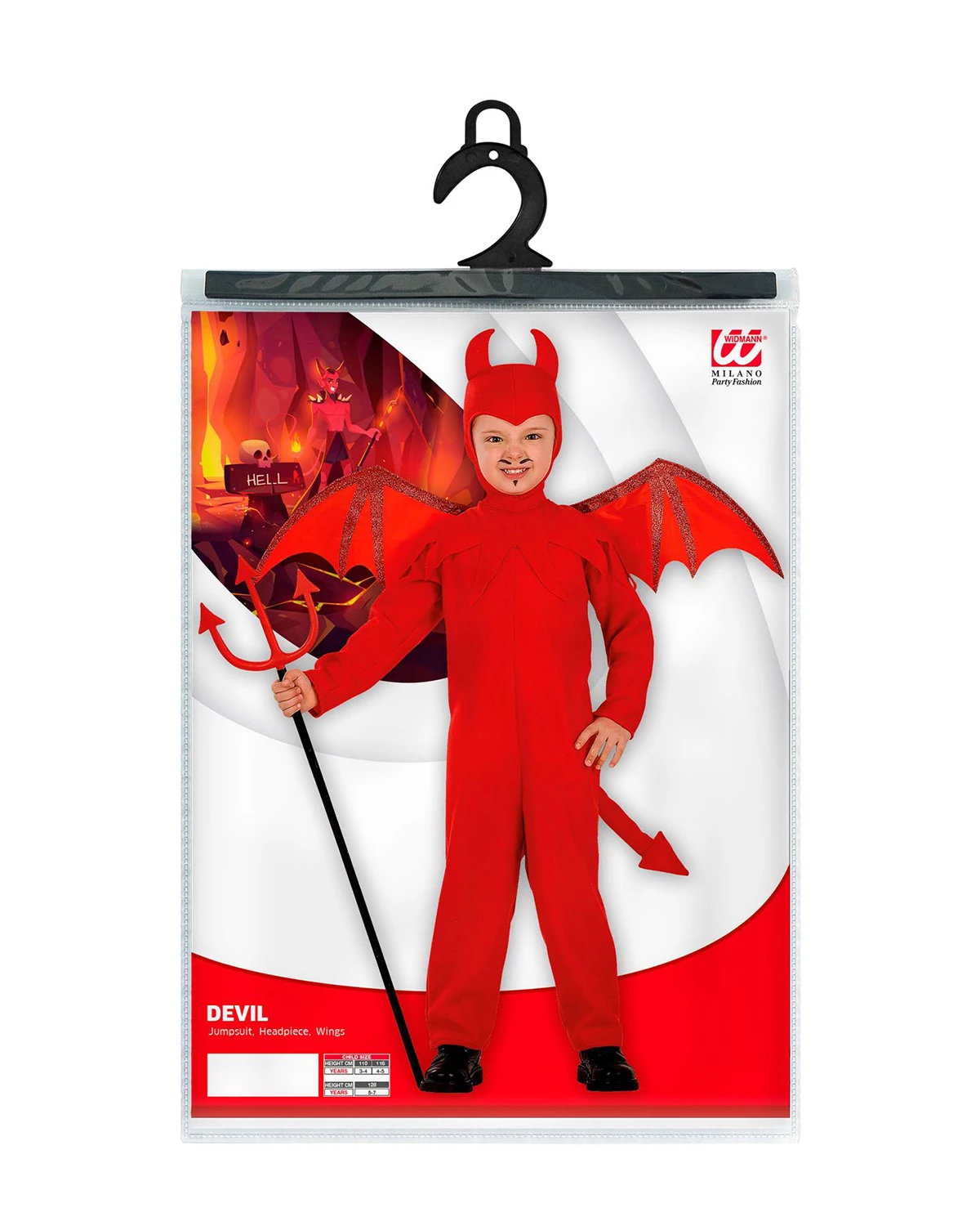 DIABLE costume, cagoule, ailes 116cm