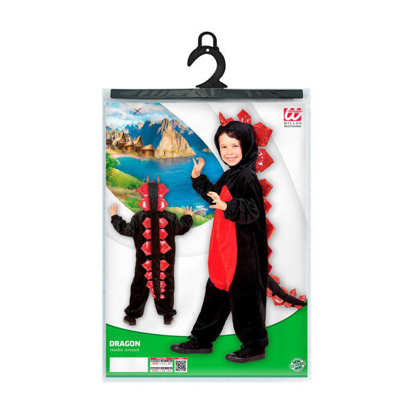 DRAGON NOIR EN PELUCHE combinaison avec capuche 116cm
